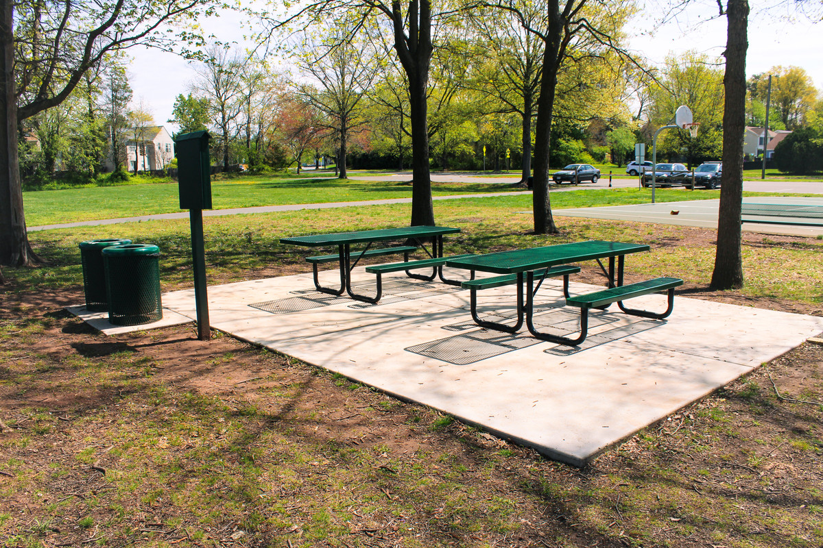 Picnic area #2 is located to the right of the trail close to the multi-use hard surface court with two picnic tables and a small grill. Available for private rentals at $30/hour. No weekend trash service.